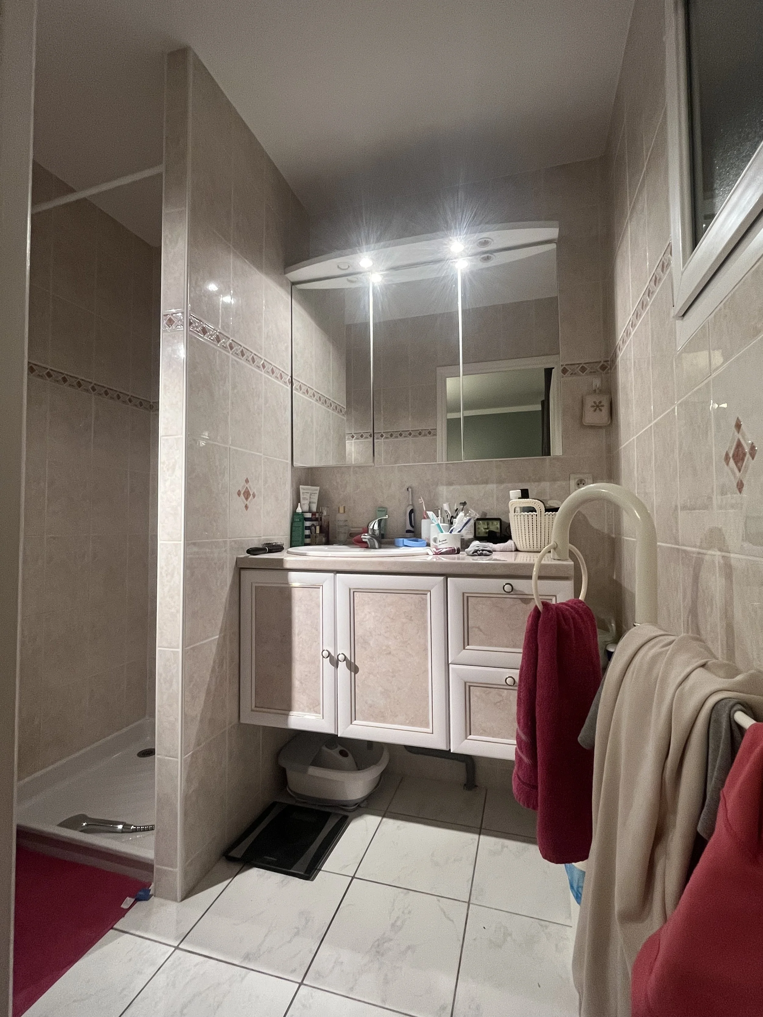 Pour ce projet, les clients avaient à cœur de moderniser leur salle d’eau tout en la rendant plus fonctionnelle et en facilitant la circulation.